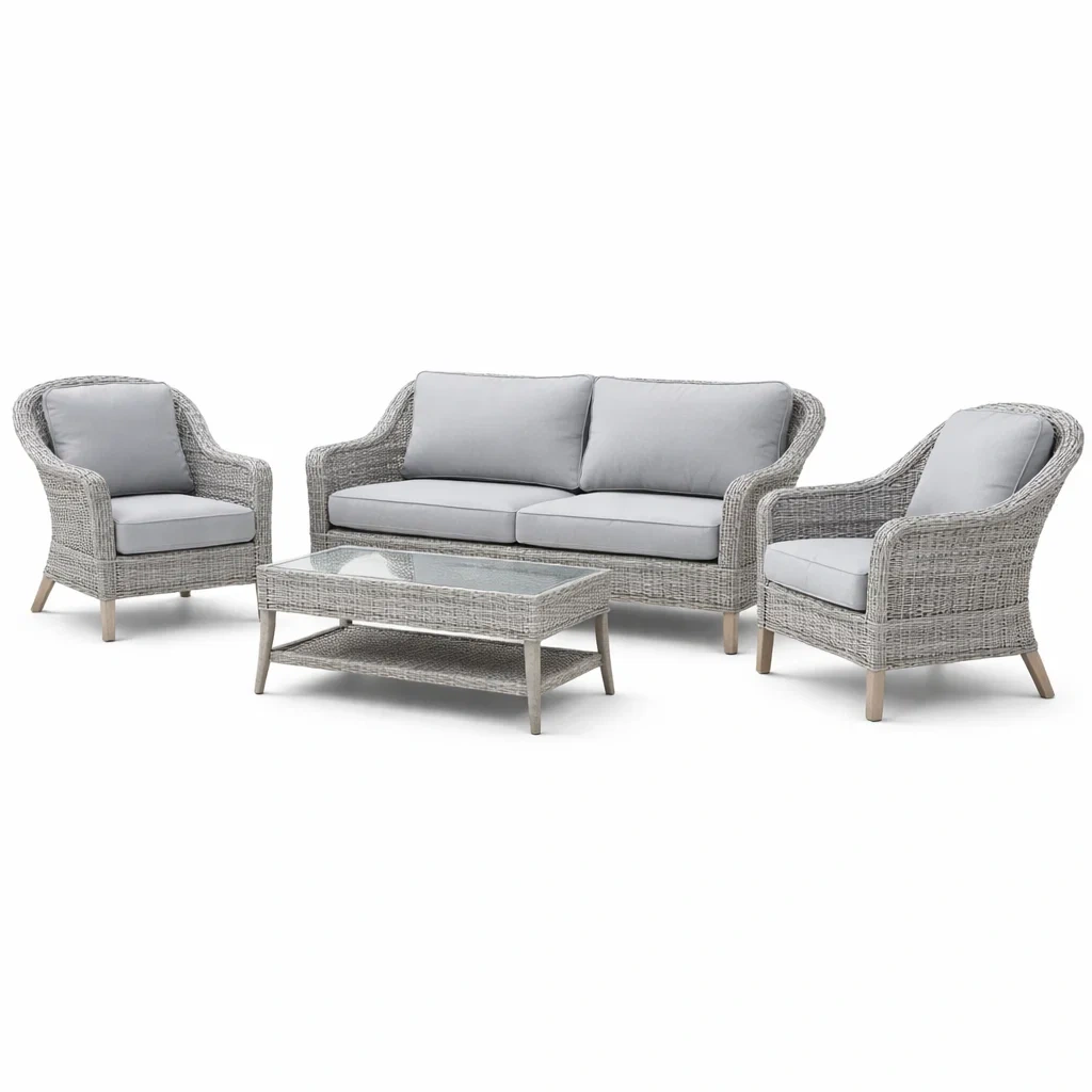 Ensemble de salon 4 pièces comprenant un canapé 3 places, deux fauteuils et une table basse.