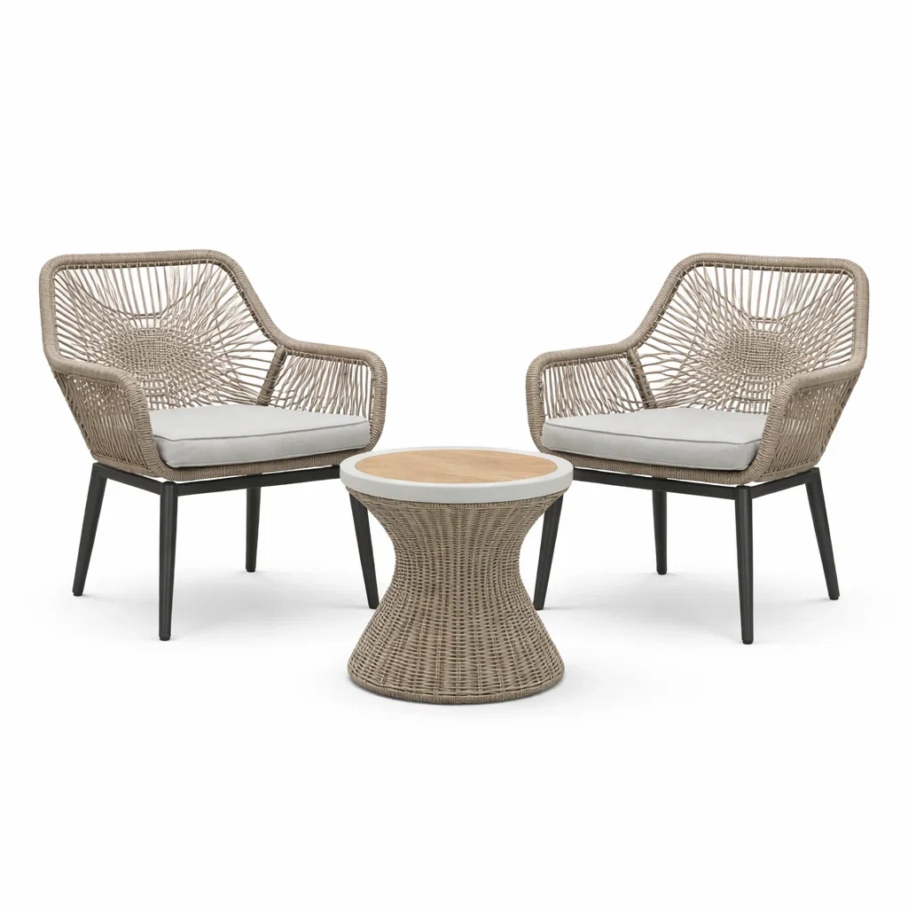 Matériau: Cadre en acier, surface en résine tressée, assise avec coussins en tissu polyester