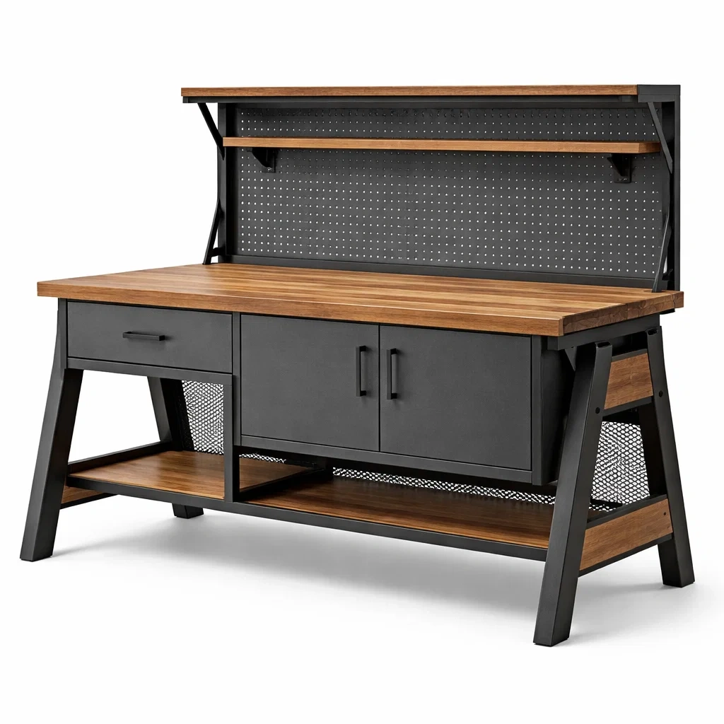 Établi en métal et bois noir et marron